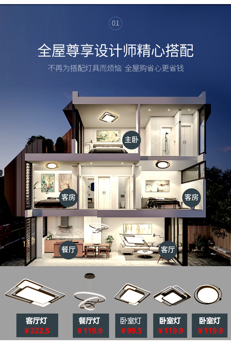 客厅灯简约现代大气家用吸顶灯卧室灯具组合全屋套餐网红灯饰套装