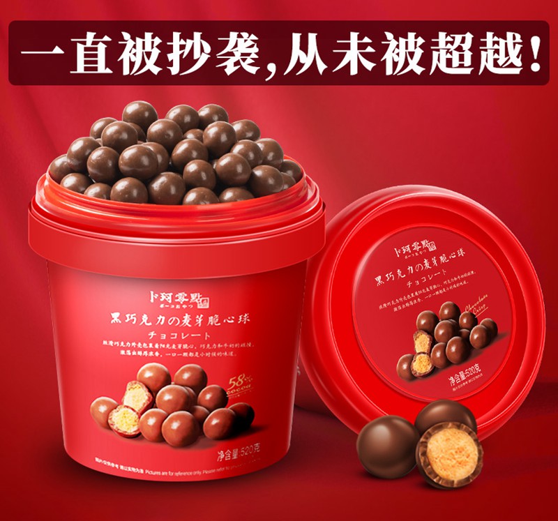桶装怀旧黑巧克力夹心麦芽脆心球零食朱古力糖果送儿童